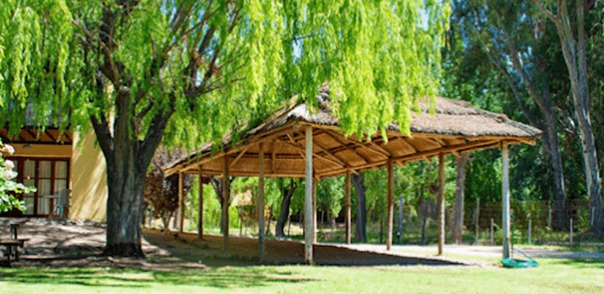 Carü Leufu está ubicado a orillas del río Atuel, a 300 metros de la