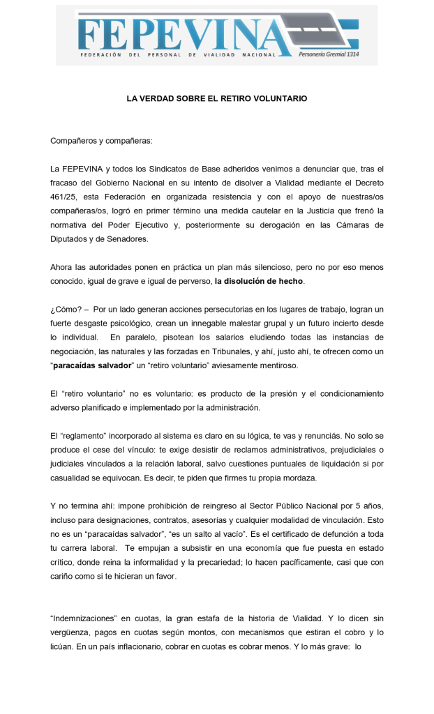 Desde FEPEVINA denunciamos que el llamado โretiro voluntarioโ es una ๐บ๐ฎ๐ป๐ถ๐ผ๐ฏ๐ฟ๐ฎ ๐ฒ๐ป๐ฐ๐๐ฏ๐ถ๐ฒ๐ฟ๐๐ฎ ๐ฑ๐ฒ ๐ฒ๐
